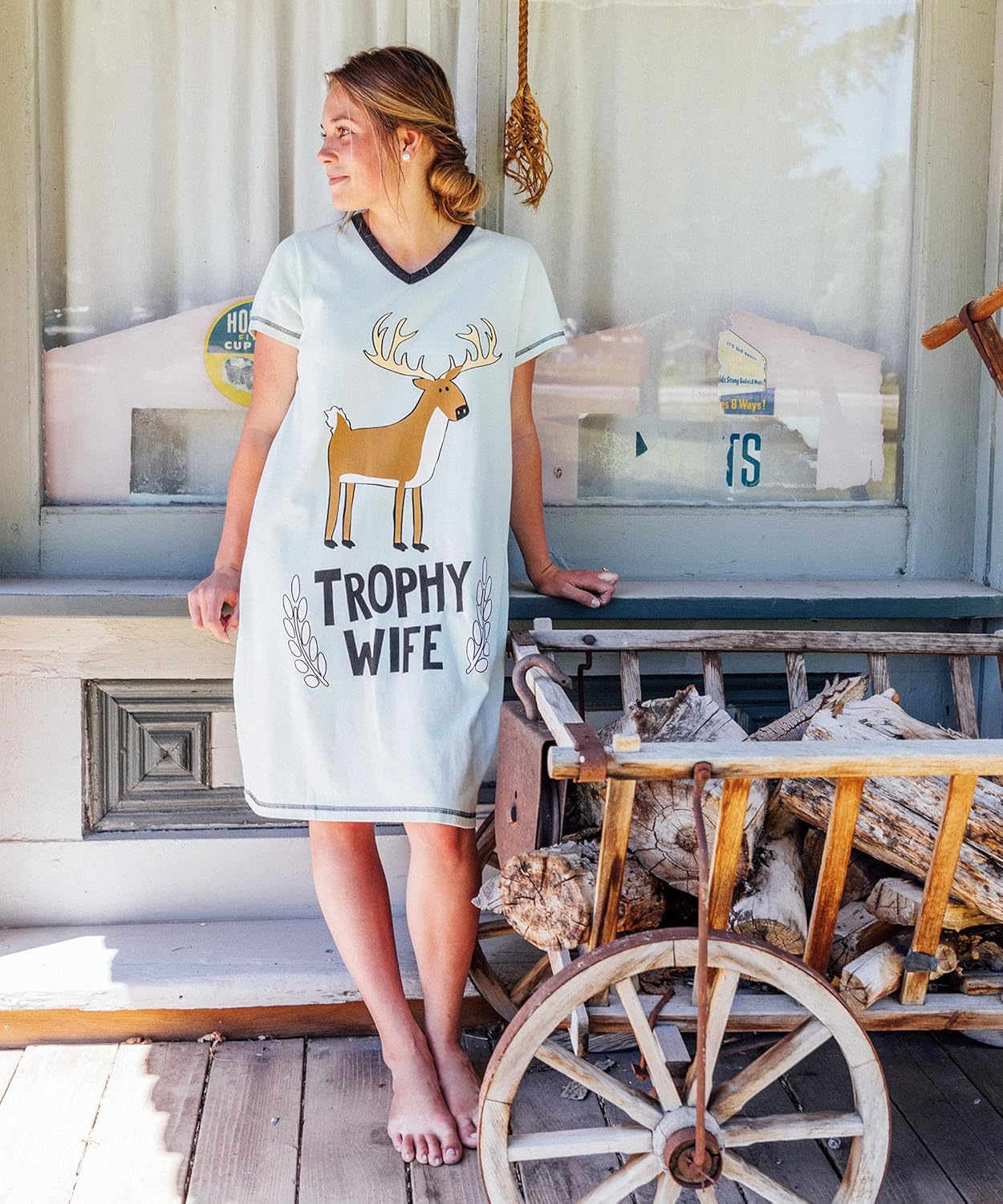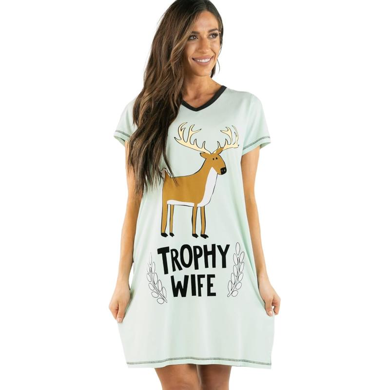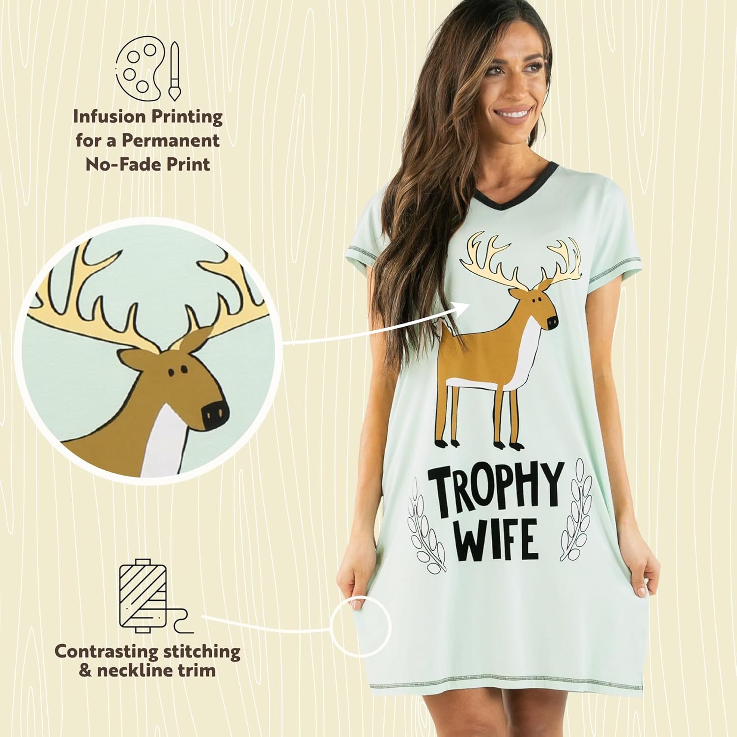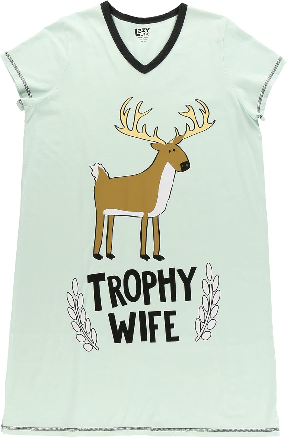 Lazy One Womens Nightgown Funny VNeck Sleep Shirt for Women Novelty Pajama ShirtTrophy Wife Nightshirt