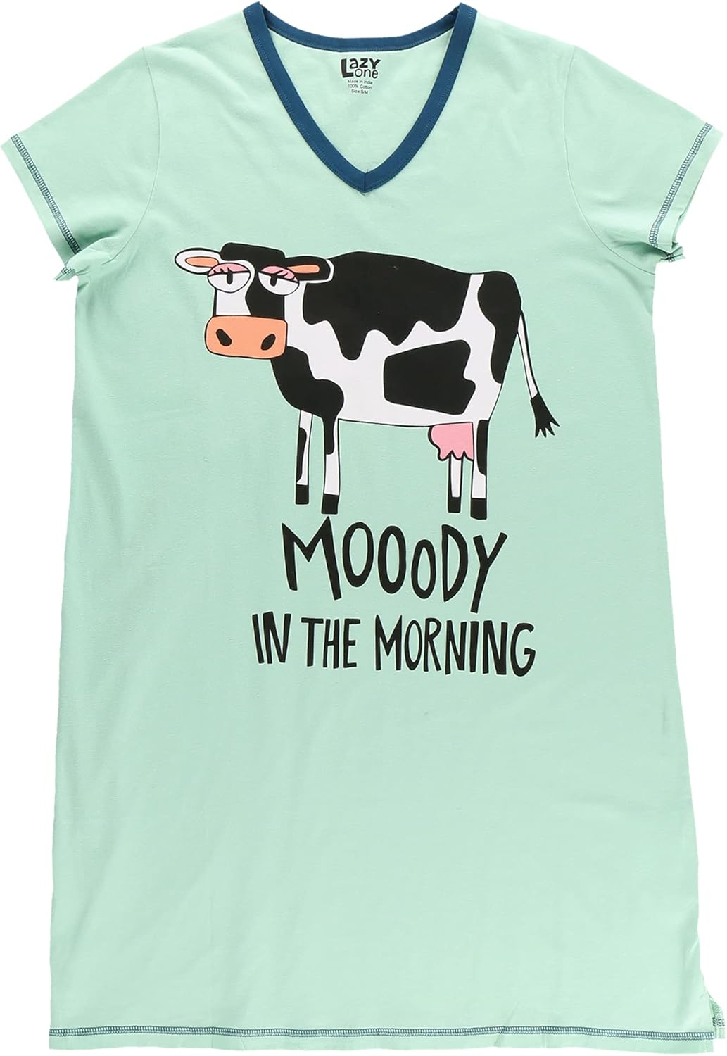 Lazy One Women’s Nightgown, Funny V-Neck Sleep Shirt for Women, Novelty Pajama Tees(Moody in the Morning Blue Nightshirt)