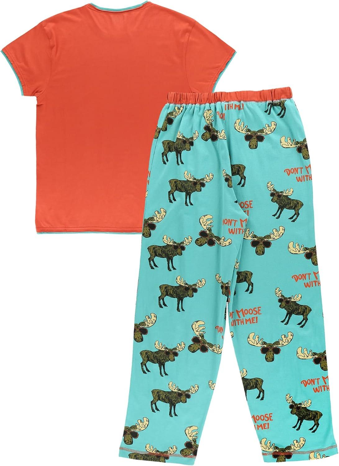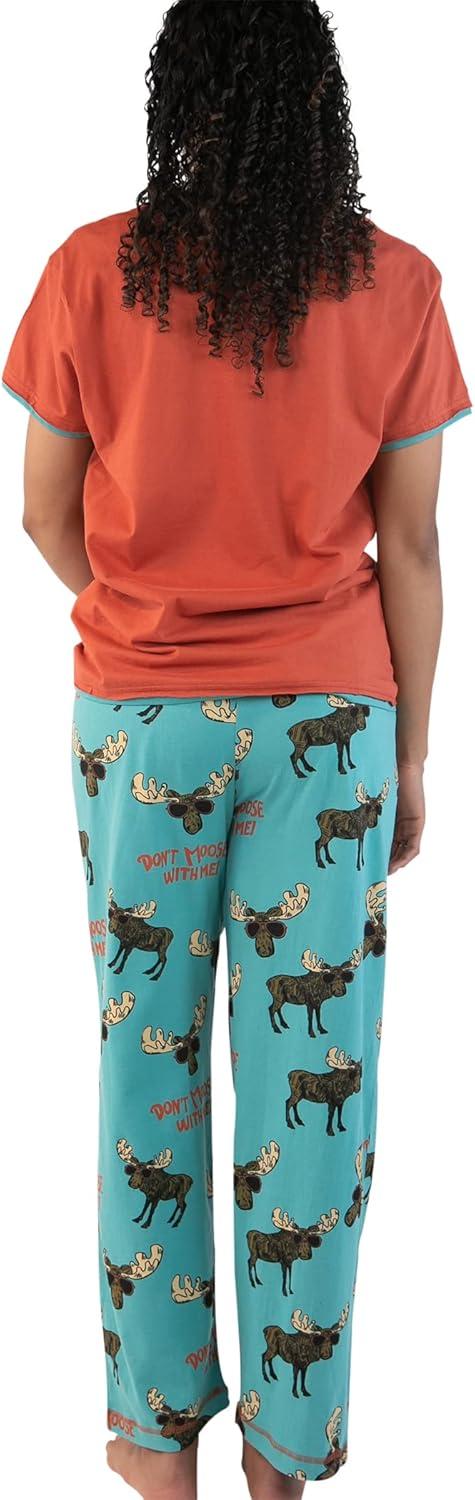 imageLazy One Womens Pajama Set Short Sleeves with Cute Prints Relaxed Fit Animal Dont Moose Medium
