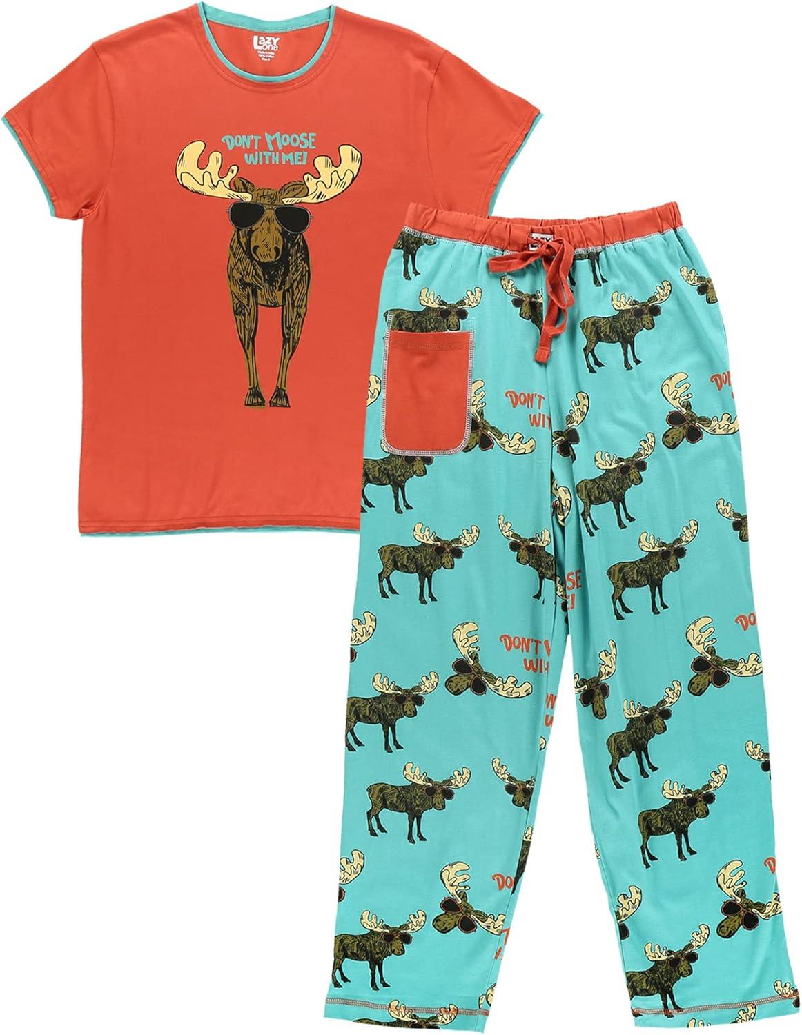 Lazy One Women’s Pajama Set, Short Sleeves with Cute Prints, Relaxed Fit, Bear and Moose Prints(Don’t Moose Pajama Set)