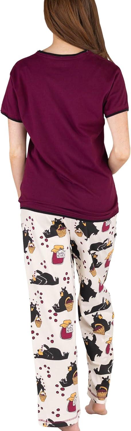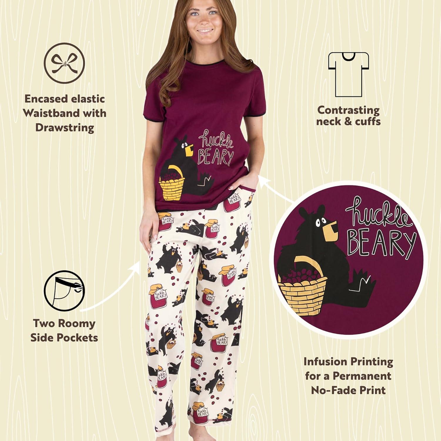 Lazy One Women's Pajama Set, Short Sleeves with Cute Prints, Relaxed Fit, Bear and Moose Prints(Huckleberry Pajama Set)