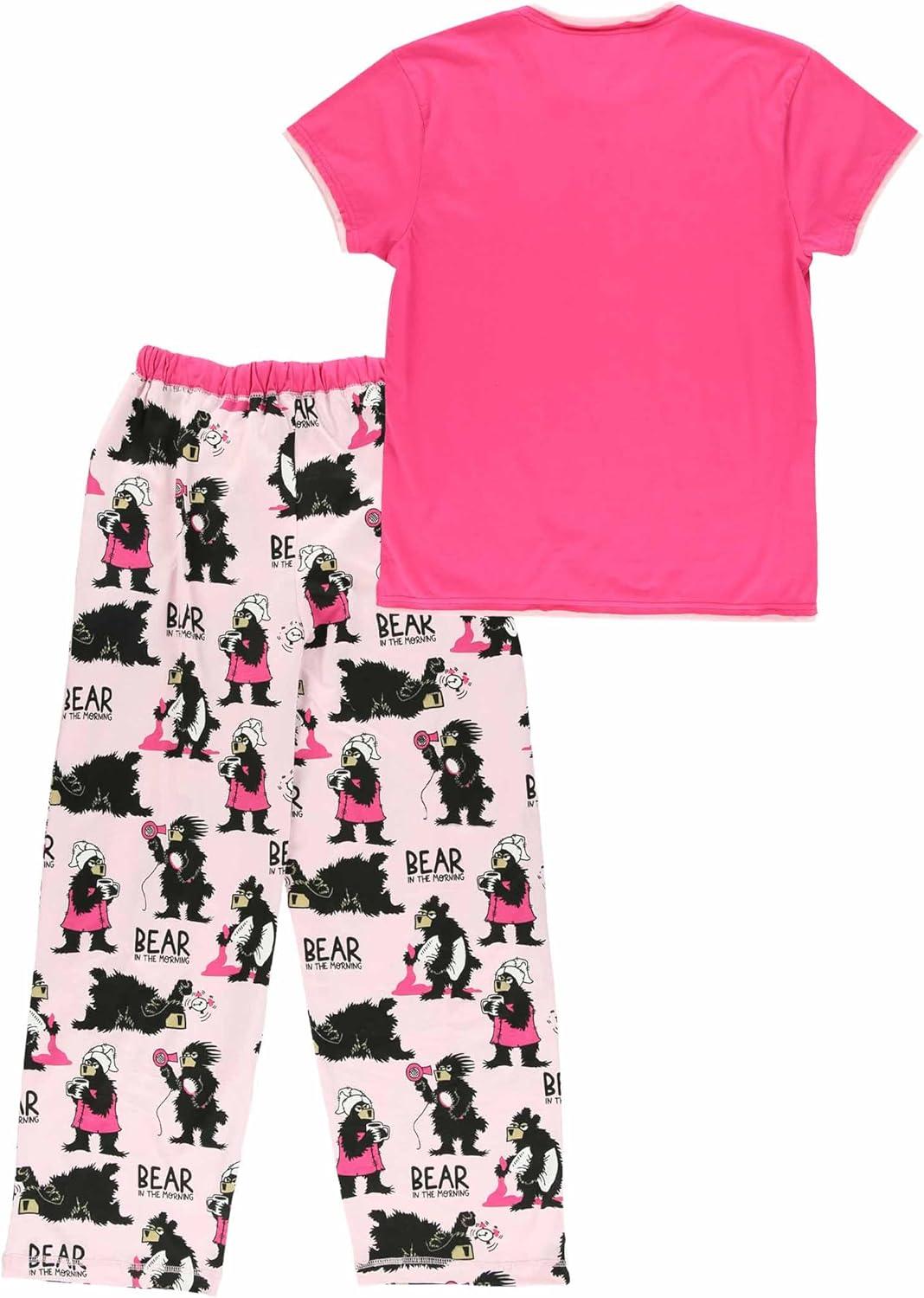 imageLazy One Womens Pajama Set Short Sleeves with Cute Prints Relaxed Fit Bear and Moose PrintsPink Bear in the Morning Pajama Set