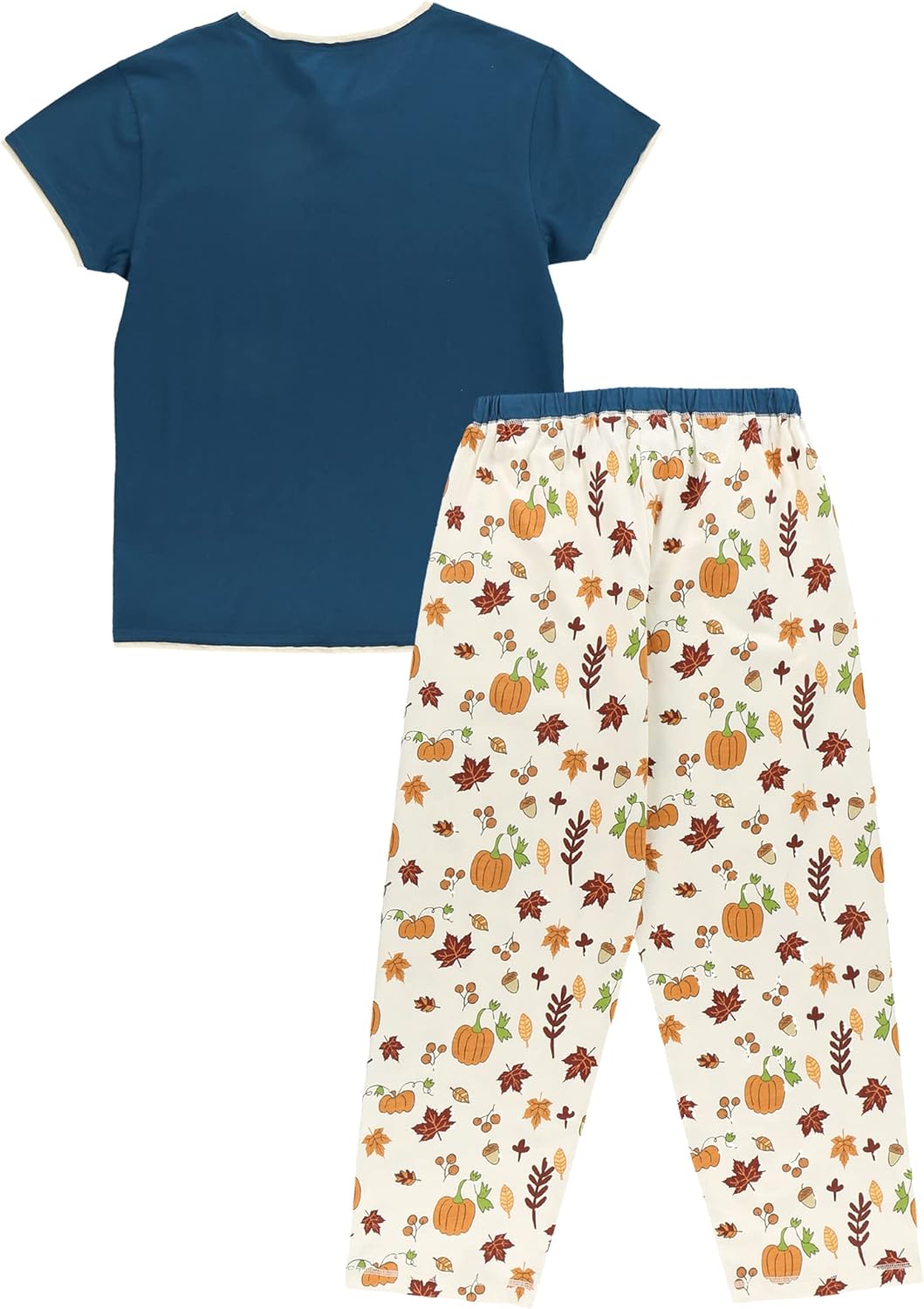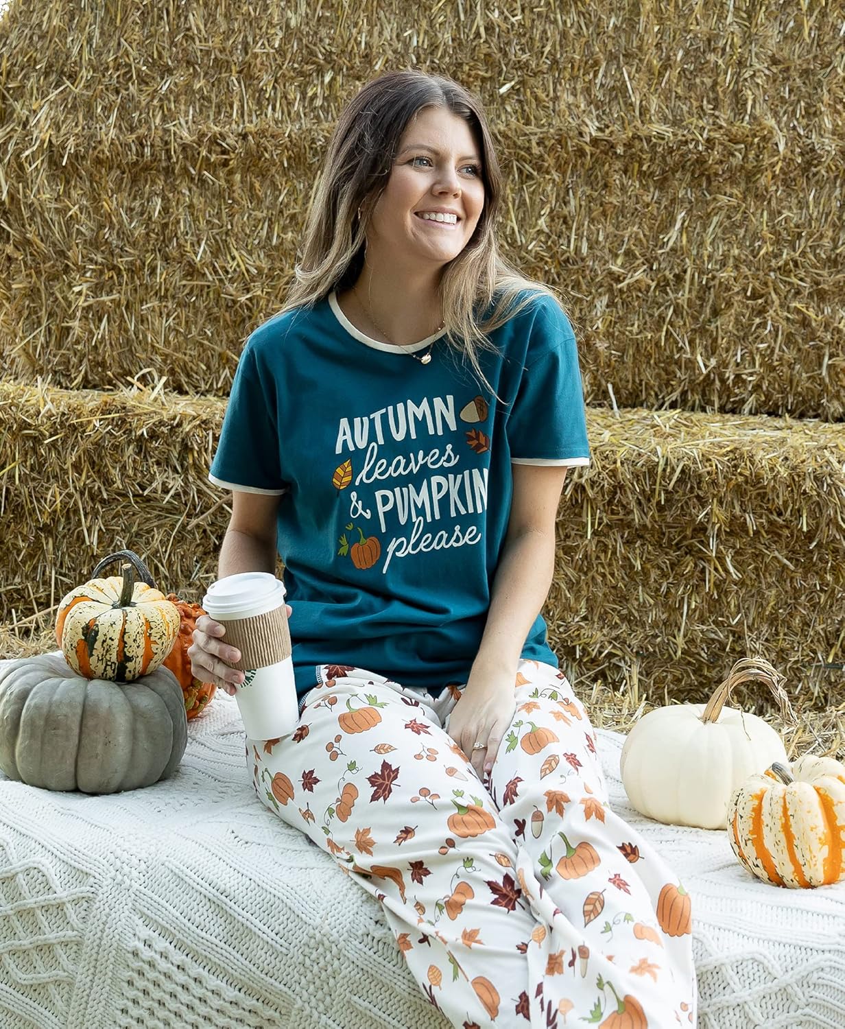 Lazy One Womens Pajama Set Short Sleeves with Cute Prints Relaxed FitAutumn Leaves Pajama Set