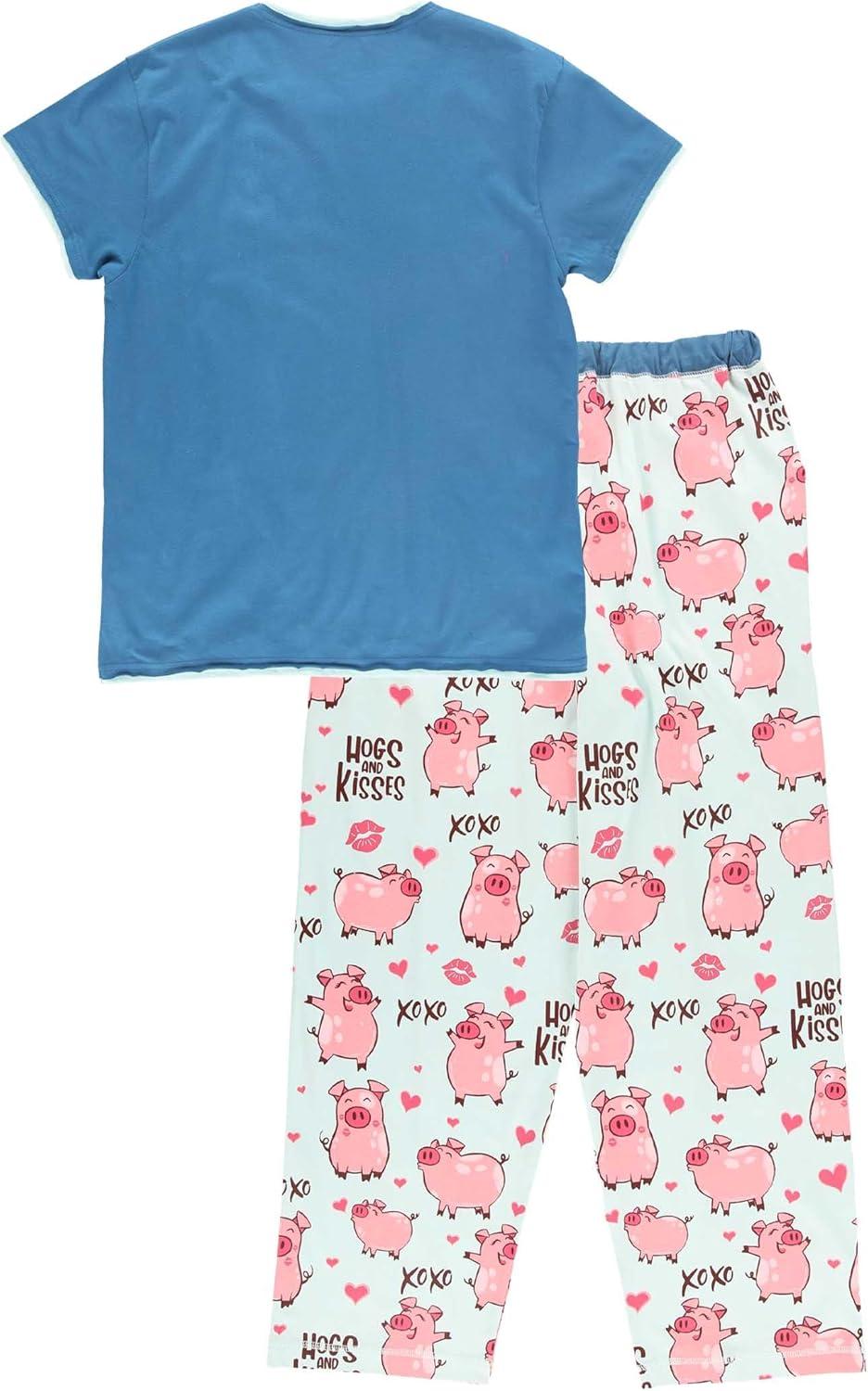 Lazy One Women’s Pajama Set, Short Sleeves with Cute Prints, Relaxed Fit(Blue Hogs & Kisses Pj Set)