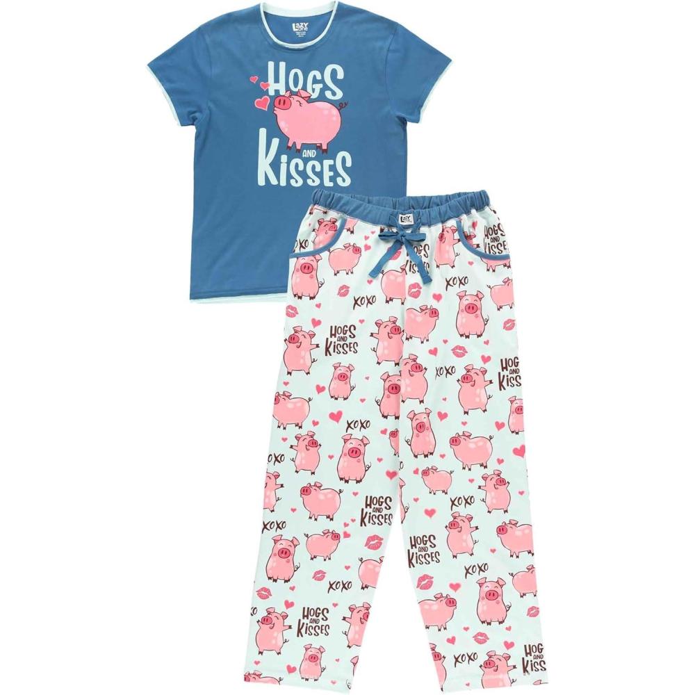 imageLazy One Womens Pajama Set Short Sleeves with Cute Prints Relaxed FitBlue Hogs  Kisses Pj Set