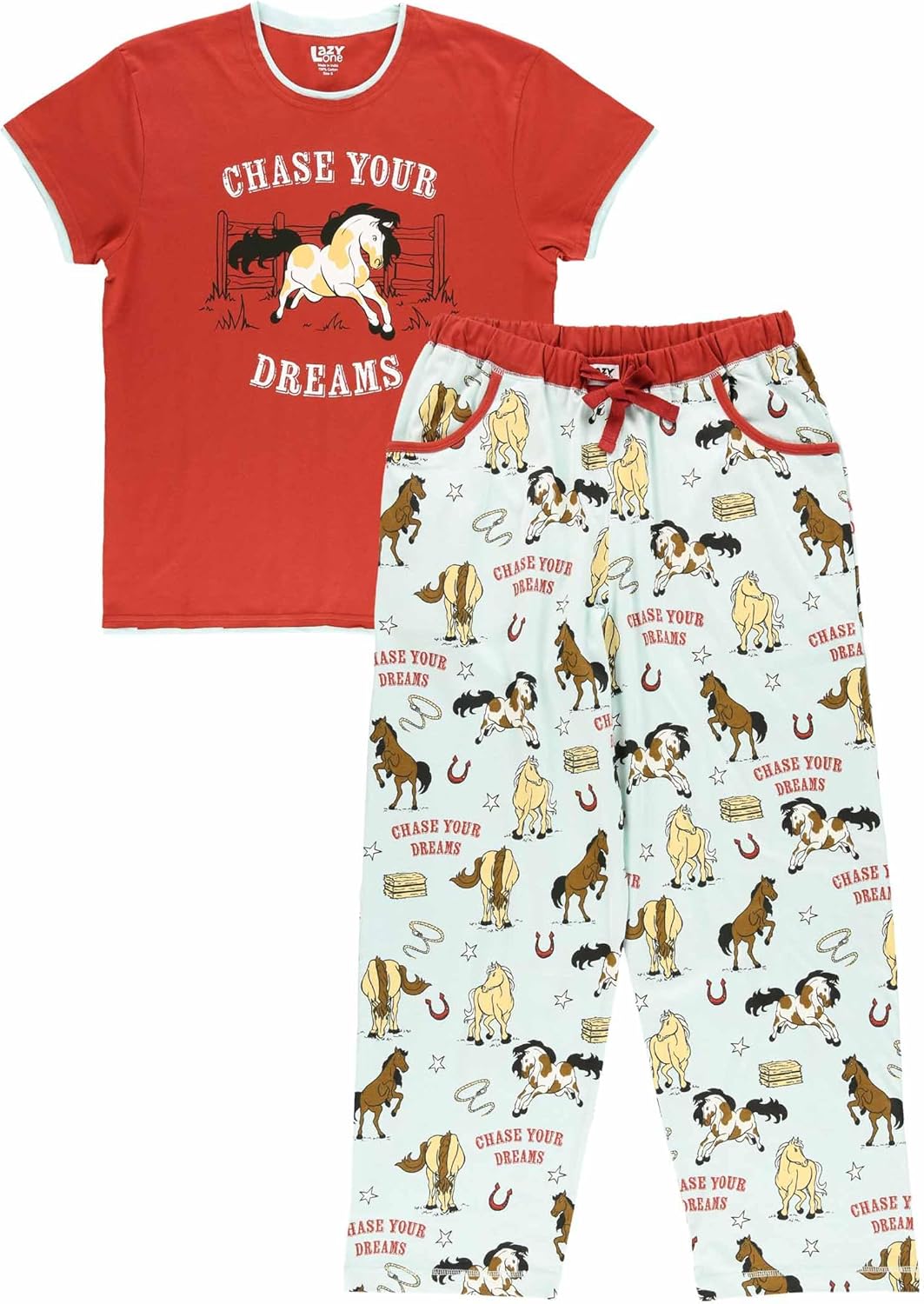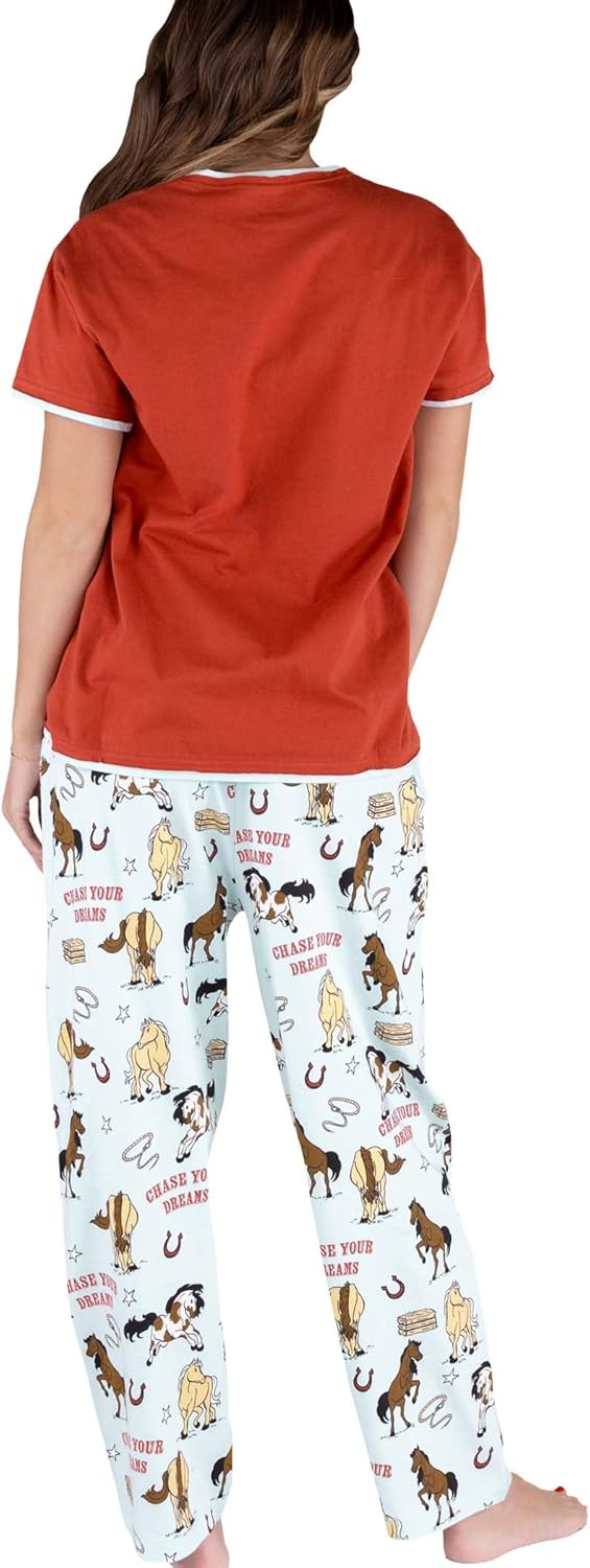 Lazy One Womens Pajama Set Short Sleeves with Cute Prints Relaxed FitChase Your Dreams Horse Pajama Set