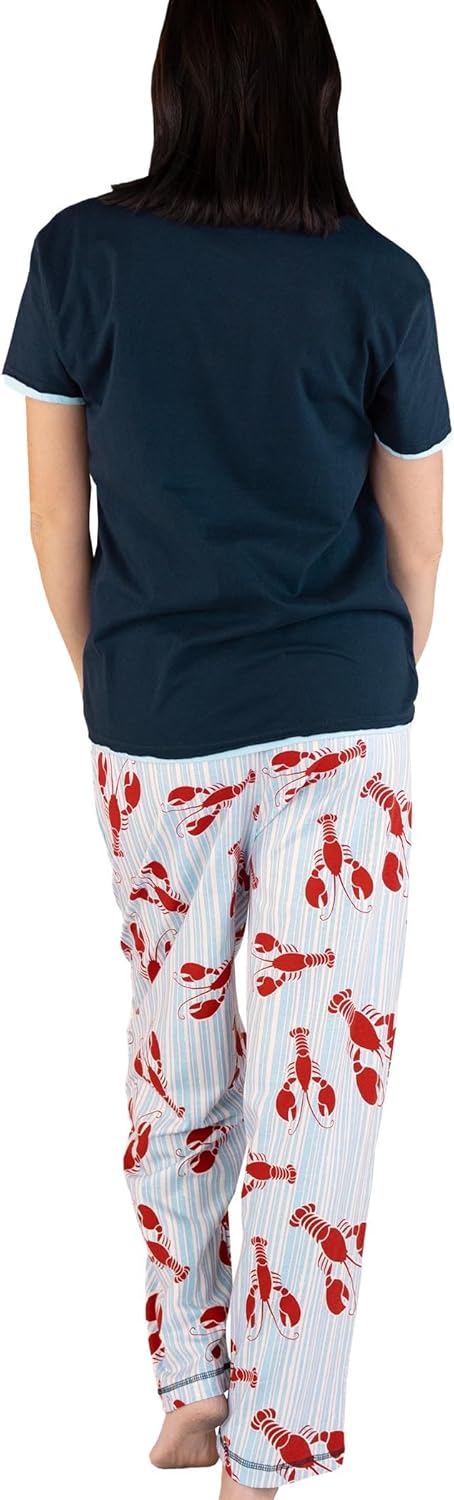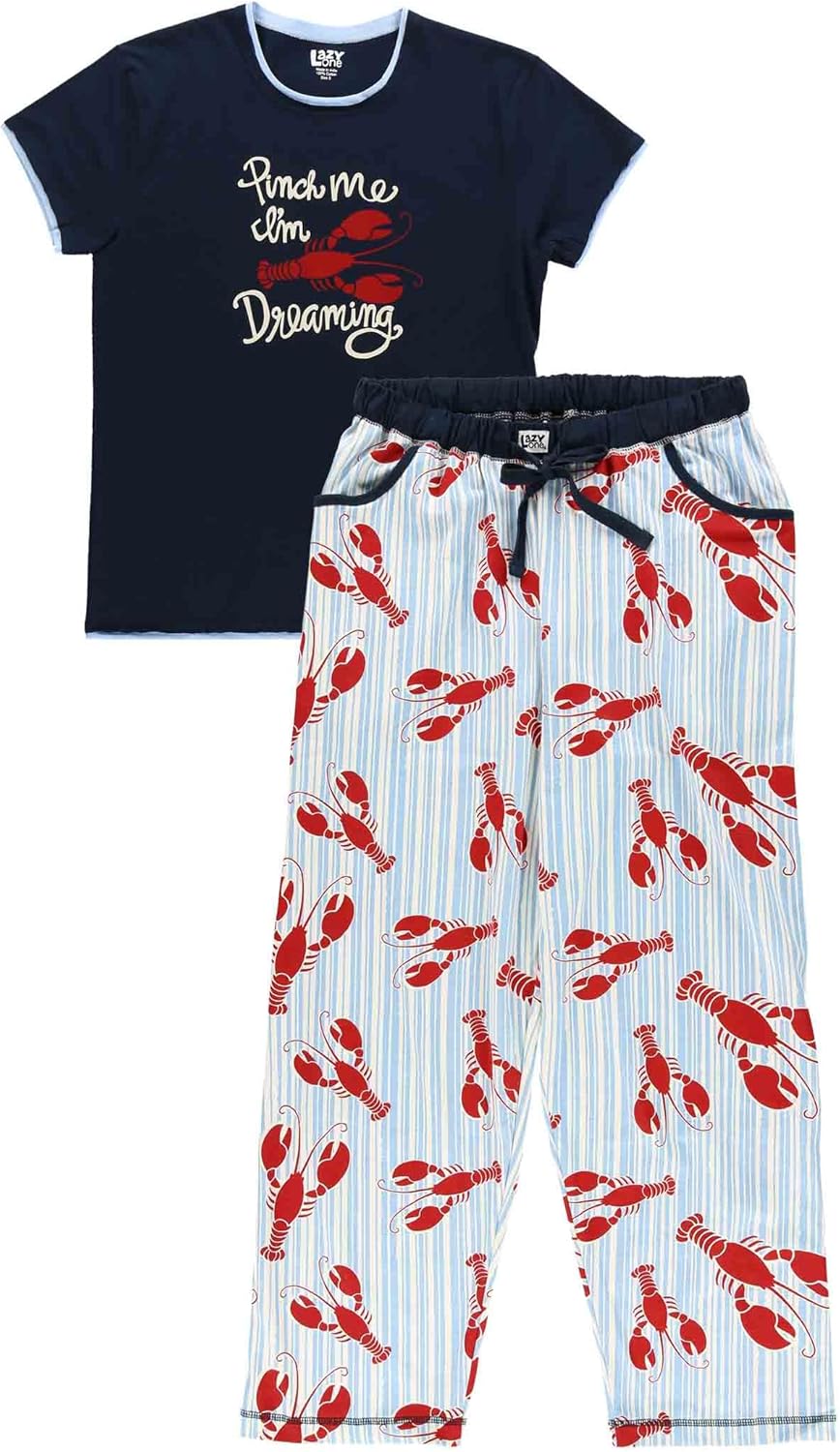 Lazy One Women’s Pajama Set, Short Sleeves with Cute Prints, Relaxed Fit(Loster Stripe Pajama Set)