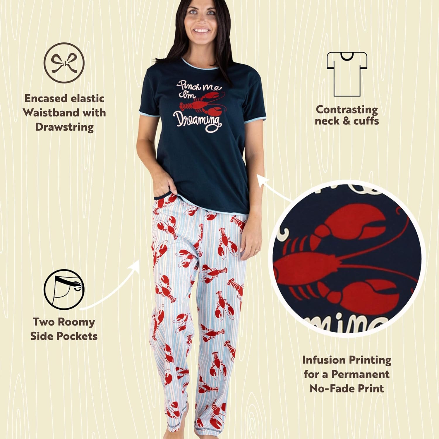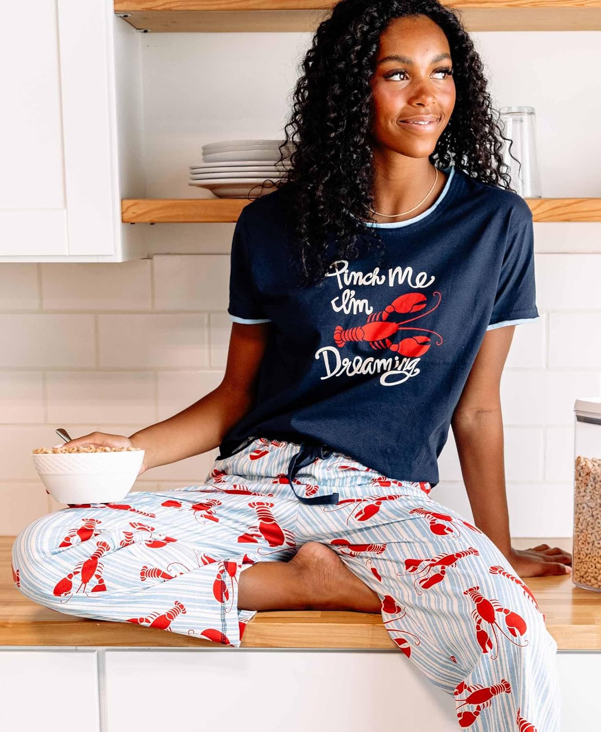 Be the first to review “Lazy One Women’s Pajama Set, Short Sleeves with Cute Prints, Relaxed Fit(Loster Stripe Pajama Set)”