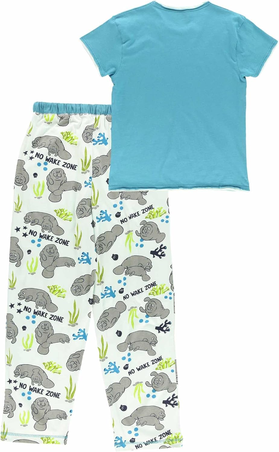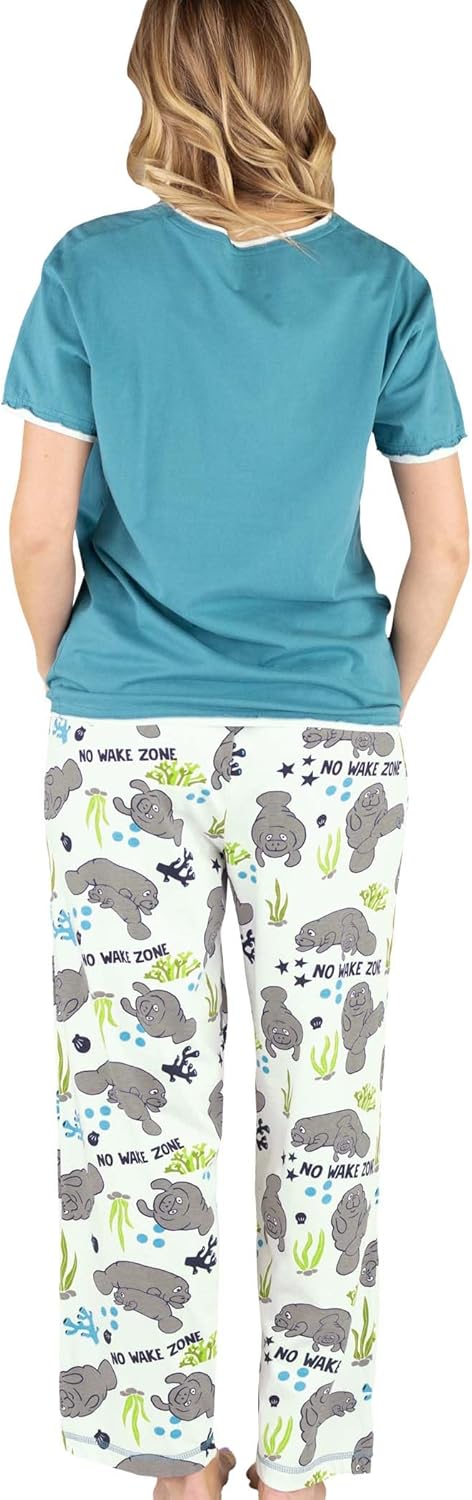 Lazy One Womens Pajama Set Short Sleeves with Cute Prints Relaxed FitNo Wake Zone Manatee Pajama Set