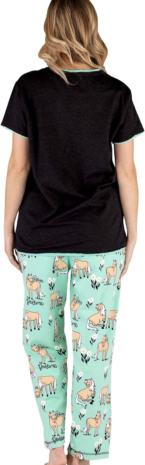 Lazy One Womens Pajama Set Short Sleeves with Cute Prints Relaxed FitPasture Bedtime Mint Pajama Set