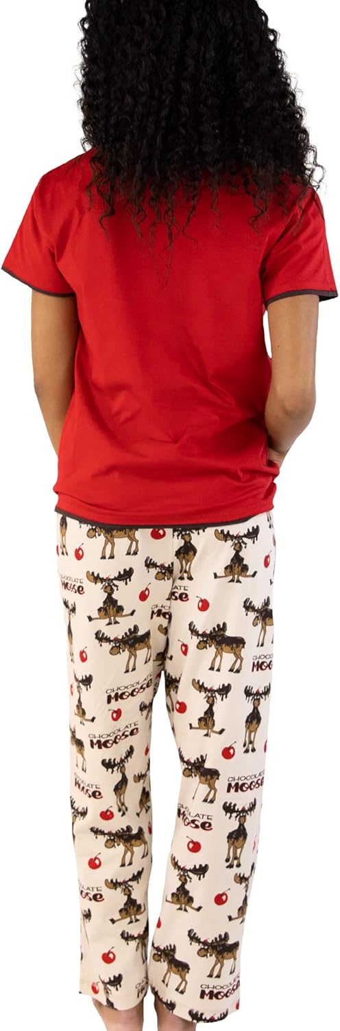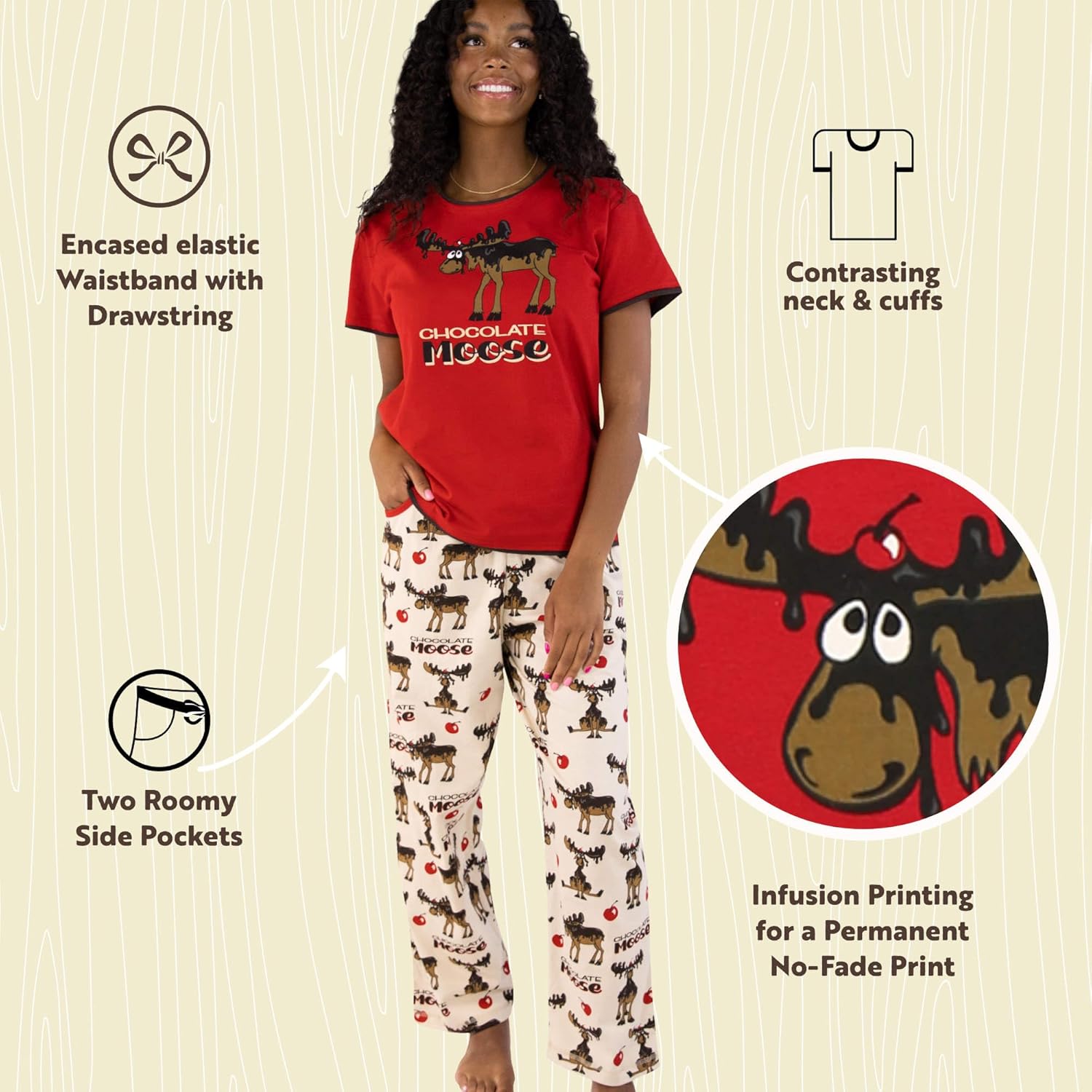 Lazy One Women's Pajama Set, Short Sleeves with Cute Prints, Relaxed Fit(Red Chocolate Moose Pajama Set)