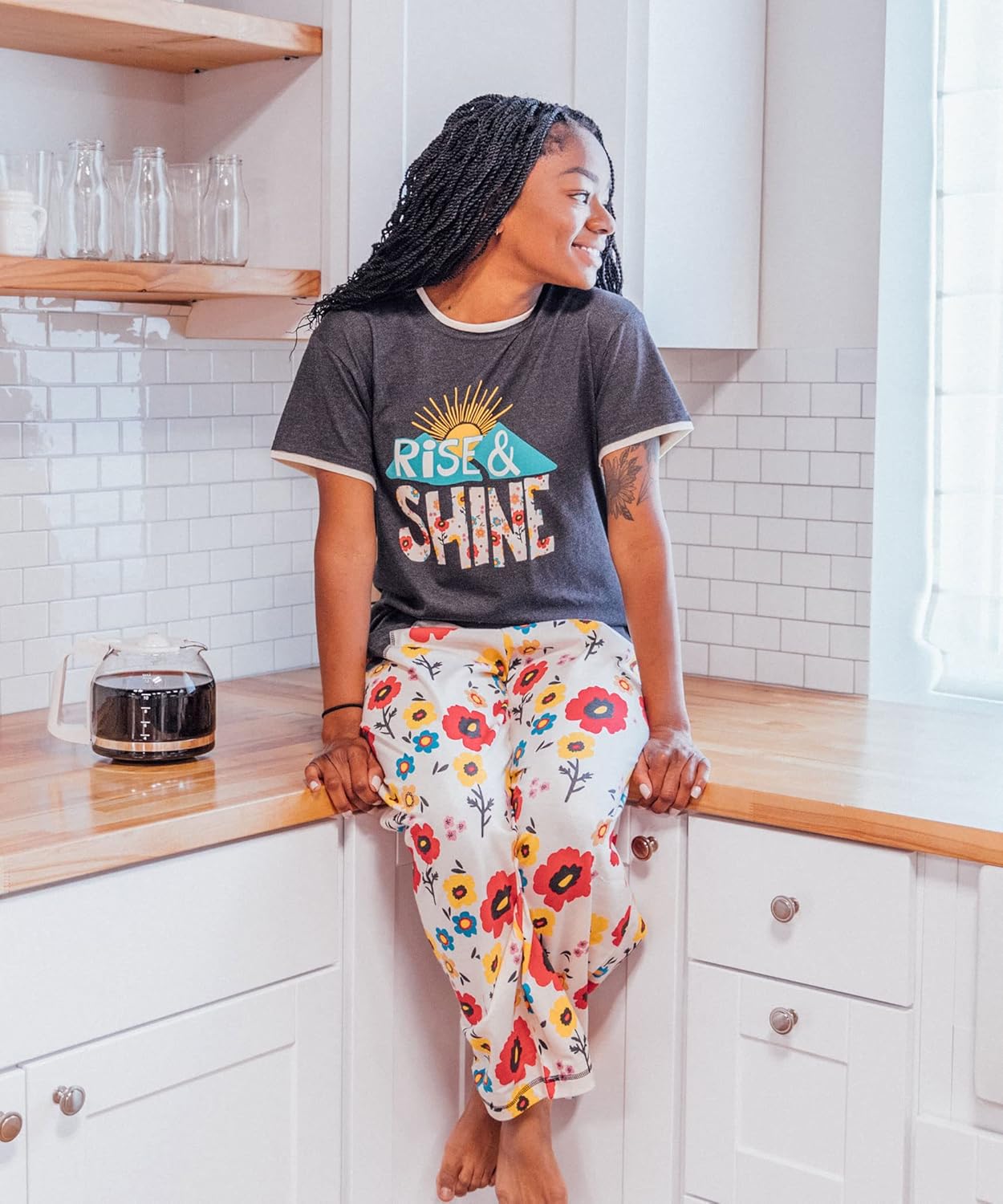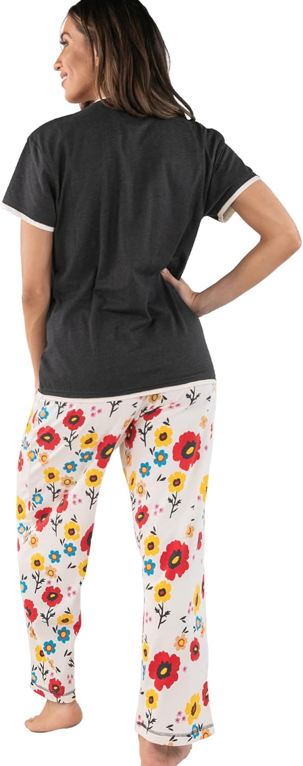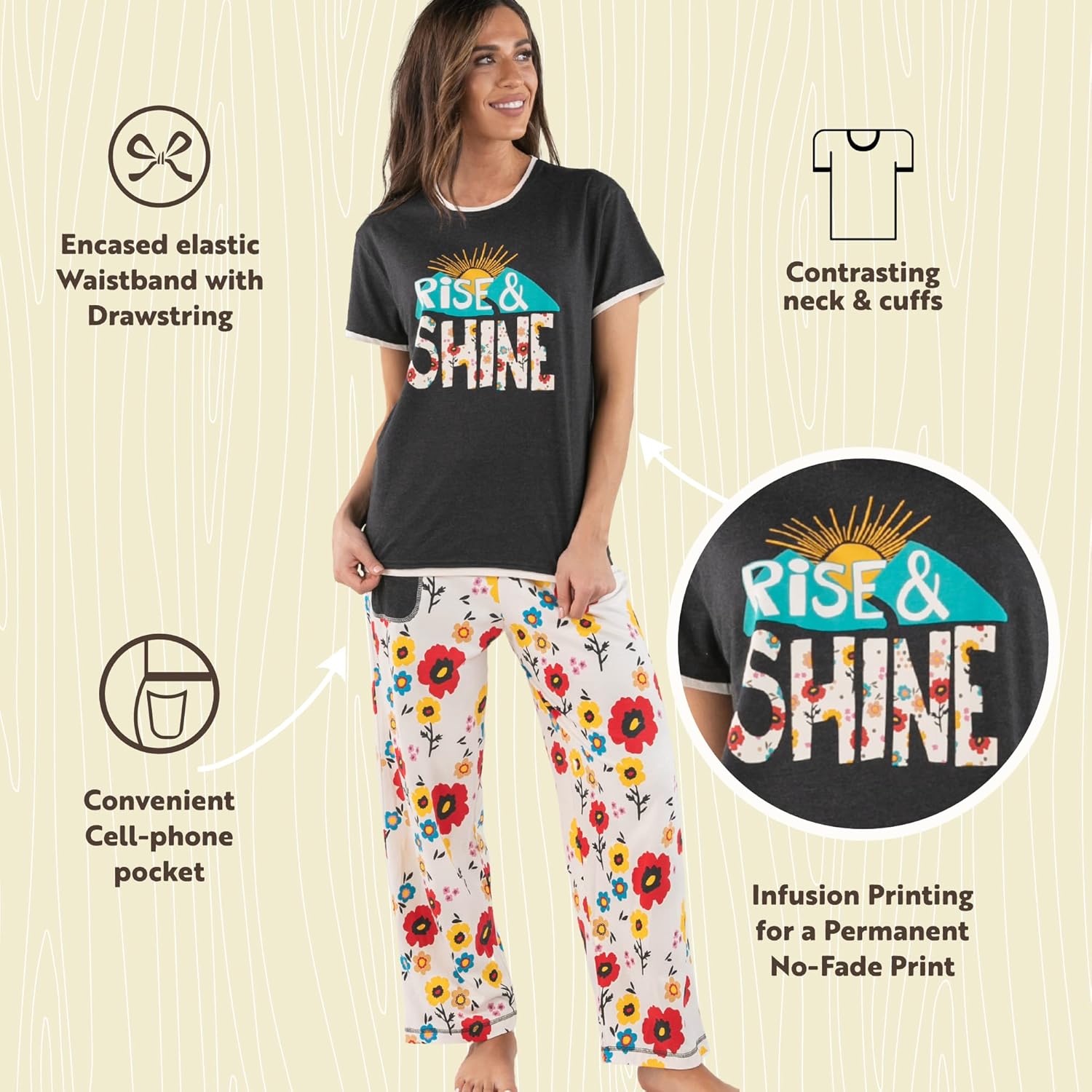 Lazy One Women’s Pajama Set, Short Sleeves with Cute Prints, Relaxed Fit(Rise & Shine Flowers Pj Set)