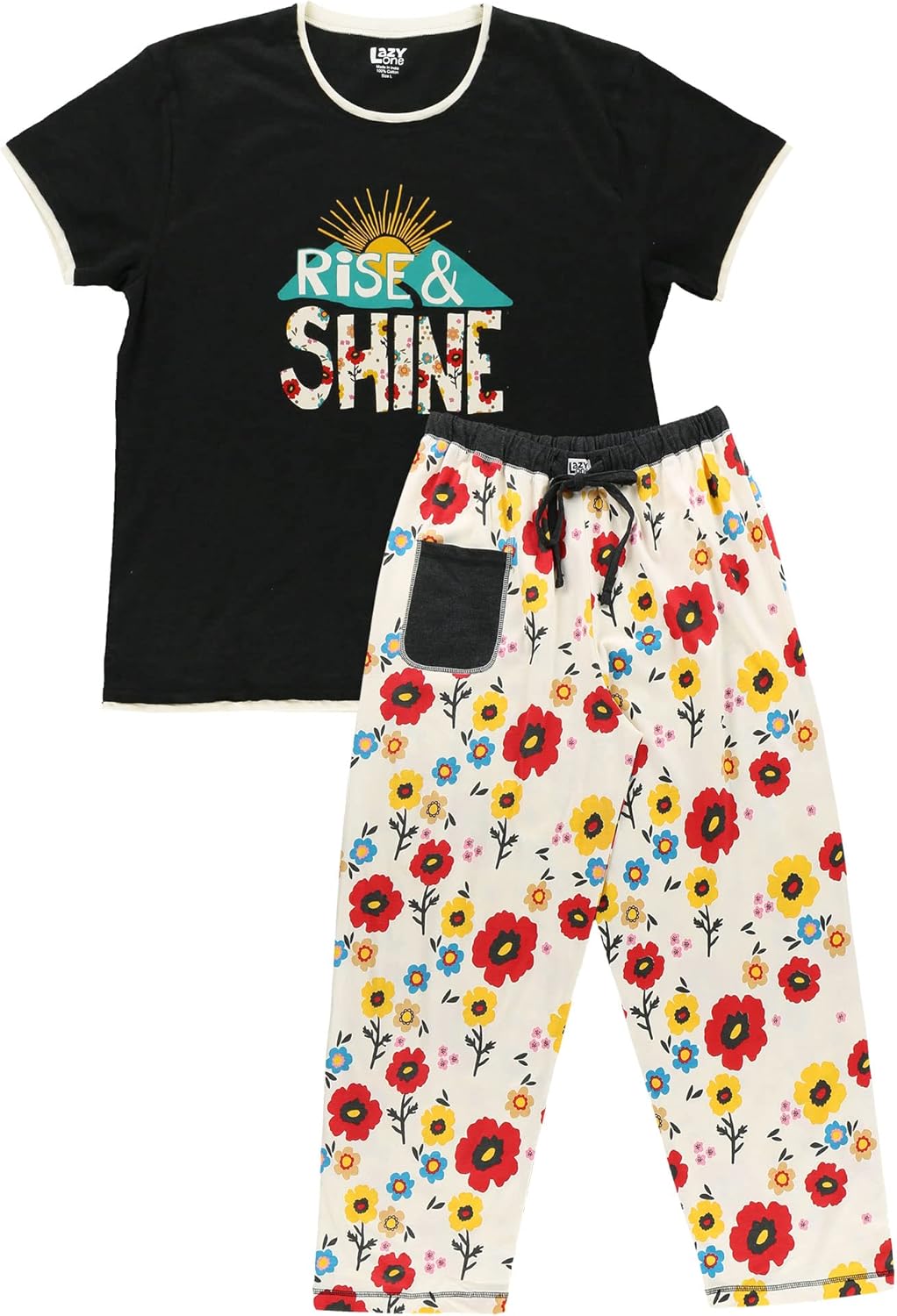 Lazy One Womens Pajama Set Short Sleeves with Cute Prints Relaxed FitRise  Shine Flowers Pj Set