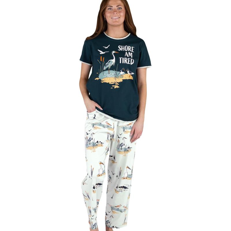 Lazy One Women’s Pajama Set, Short Sleeves with Cute Prints, Relaxed Fit(Shore Am Tired Pajama Set)