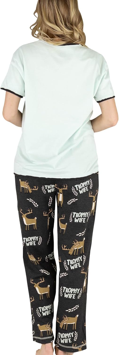 Lazy One Womens Pajama Set Short Sleeves with Cute Prints Relaxed FitTrophy Wife Blue Pajama Set