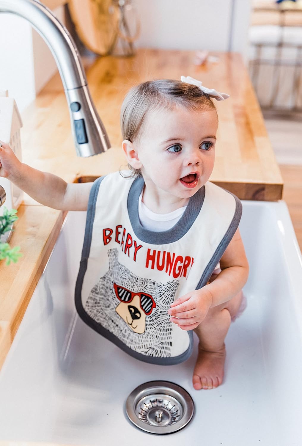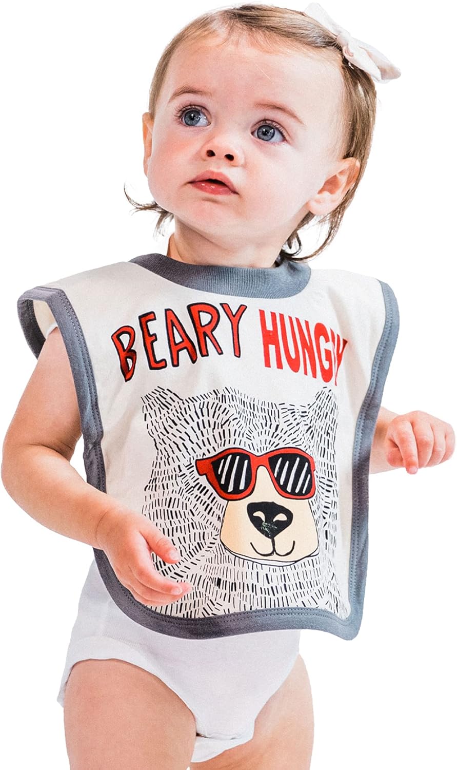 LazyOne Animal-Print Baby Bibs, Cute Baby Shower Gifts, One Size(Beary Hungry Bibs)