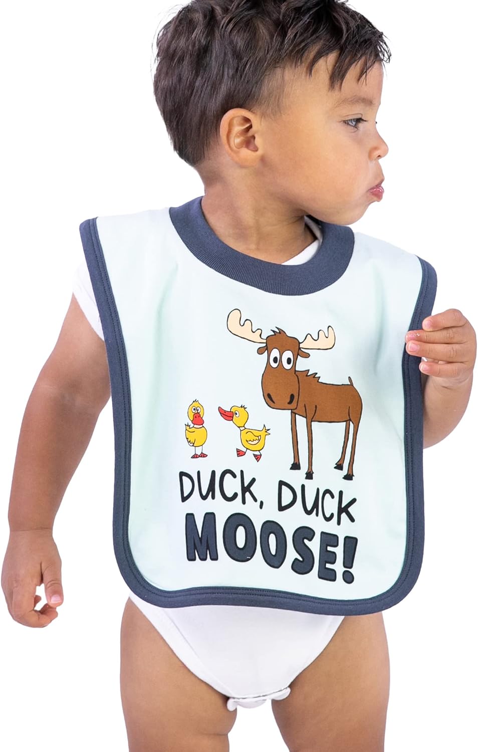 LazyOne AnimalPrint Baby Bibs Cute Baby Shower Gifts One SizeDuck Duck Moose Blue Bib