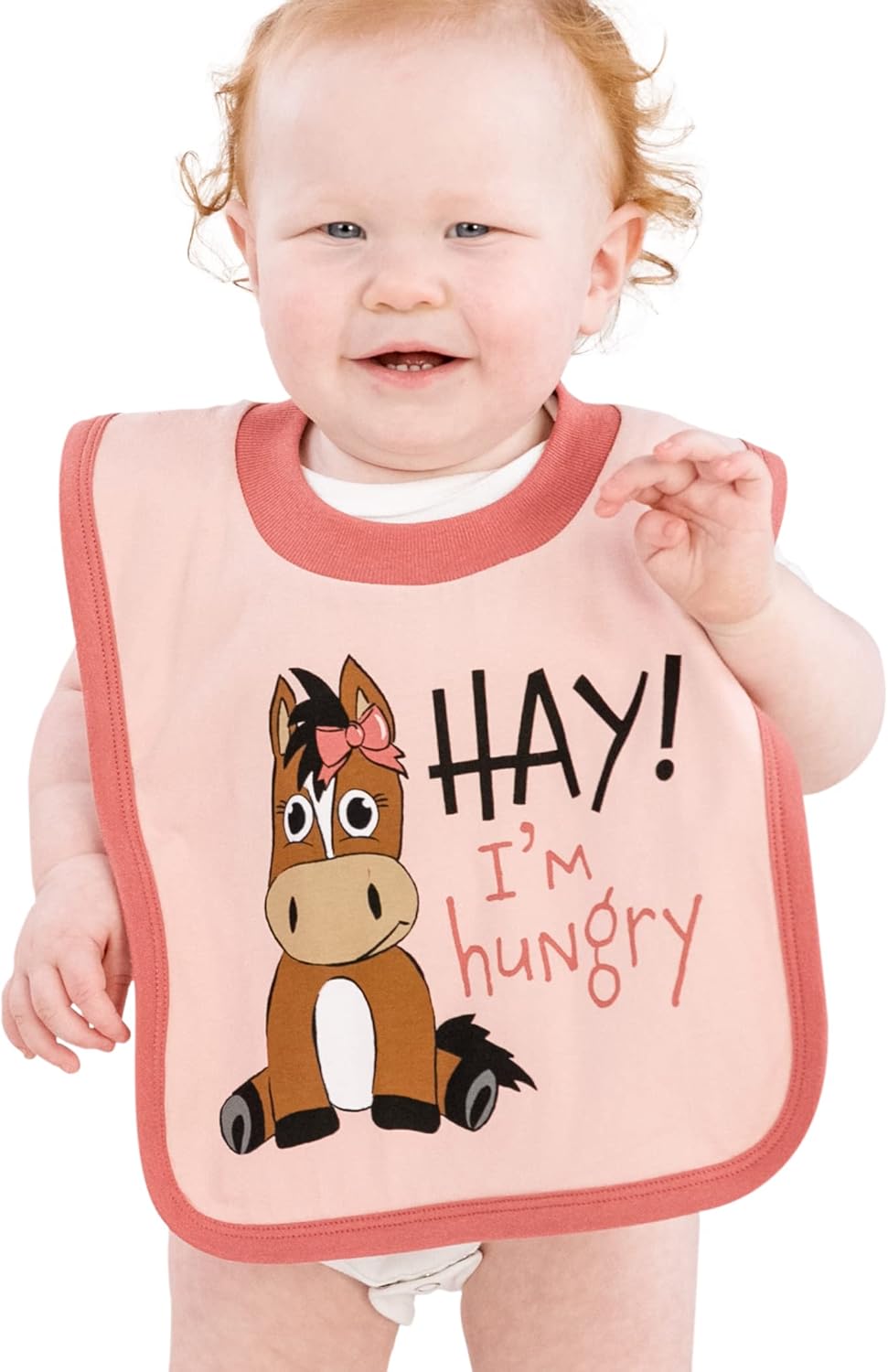 LazyOne Animal-Print Baby Bibs, Cute Baby Shower Gifts, One Size(Hay I’m Hungry Pink Bib)