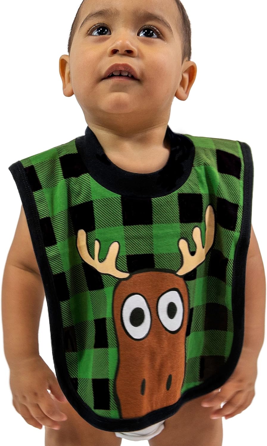 LazyOne AnimalPrint Baby Bibs Infant Bibs Cute Baby Shower Gifts One Size Pack of 2Moose Plaid and Forest Pack