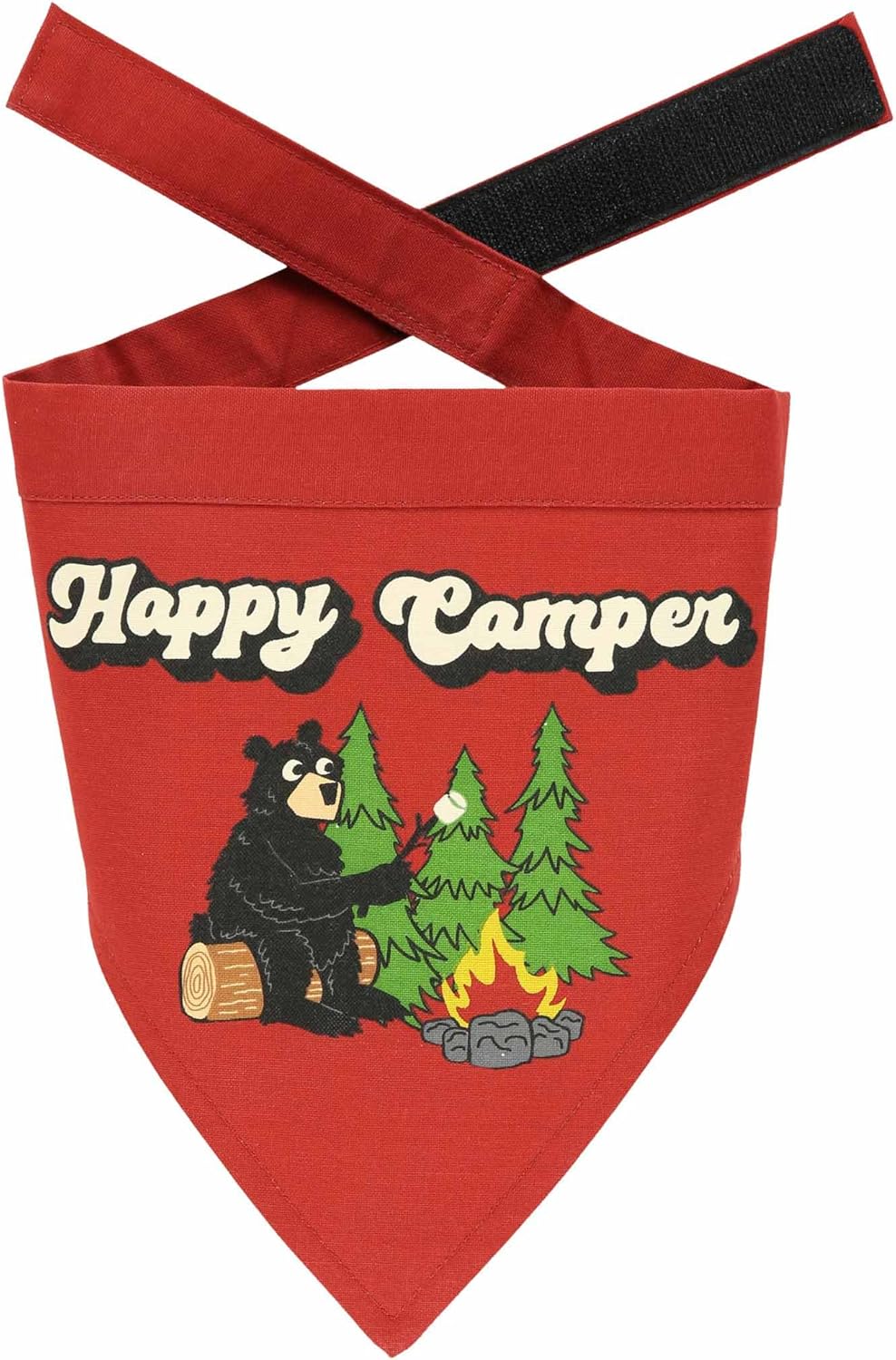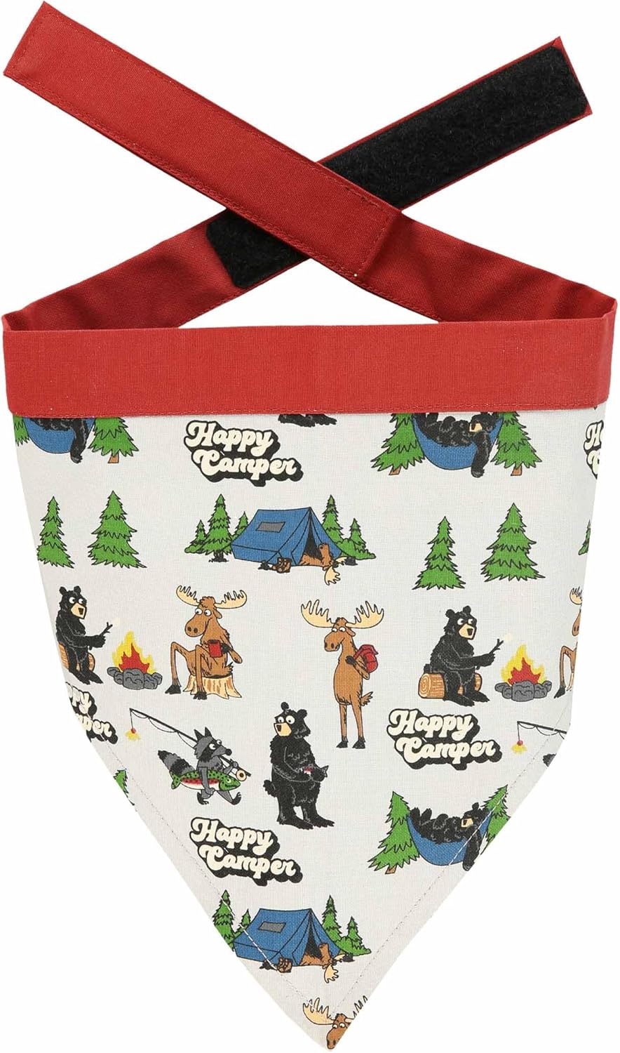 LazyOne Dog Bandana, Reversible Cotton Bandanas for All Dog Sizes (Fur Baby, Small)(Red Happy Camper Dog Bandana)