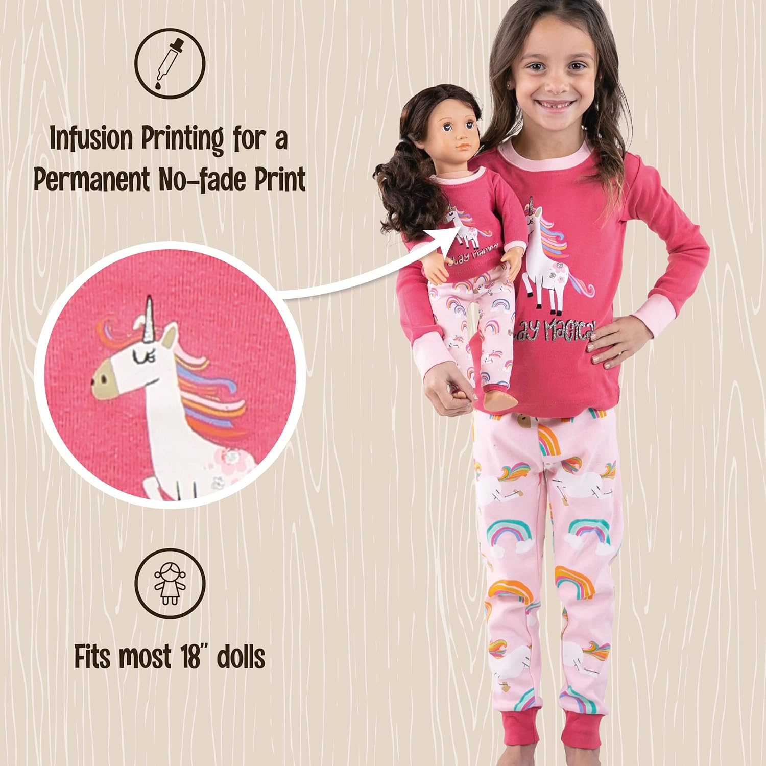 LazyOne Matching Sleep Wild Doll Pjs for Dolls and Kids American 18Inch Girl Doll Accessories Doll Clothes Matching Pajama Set for DollsStay Magical Set