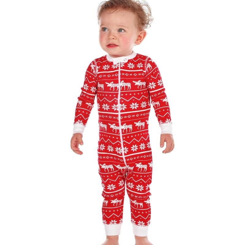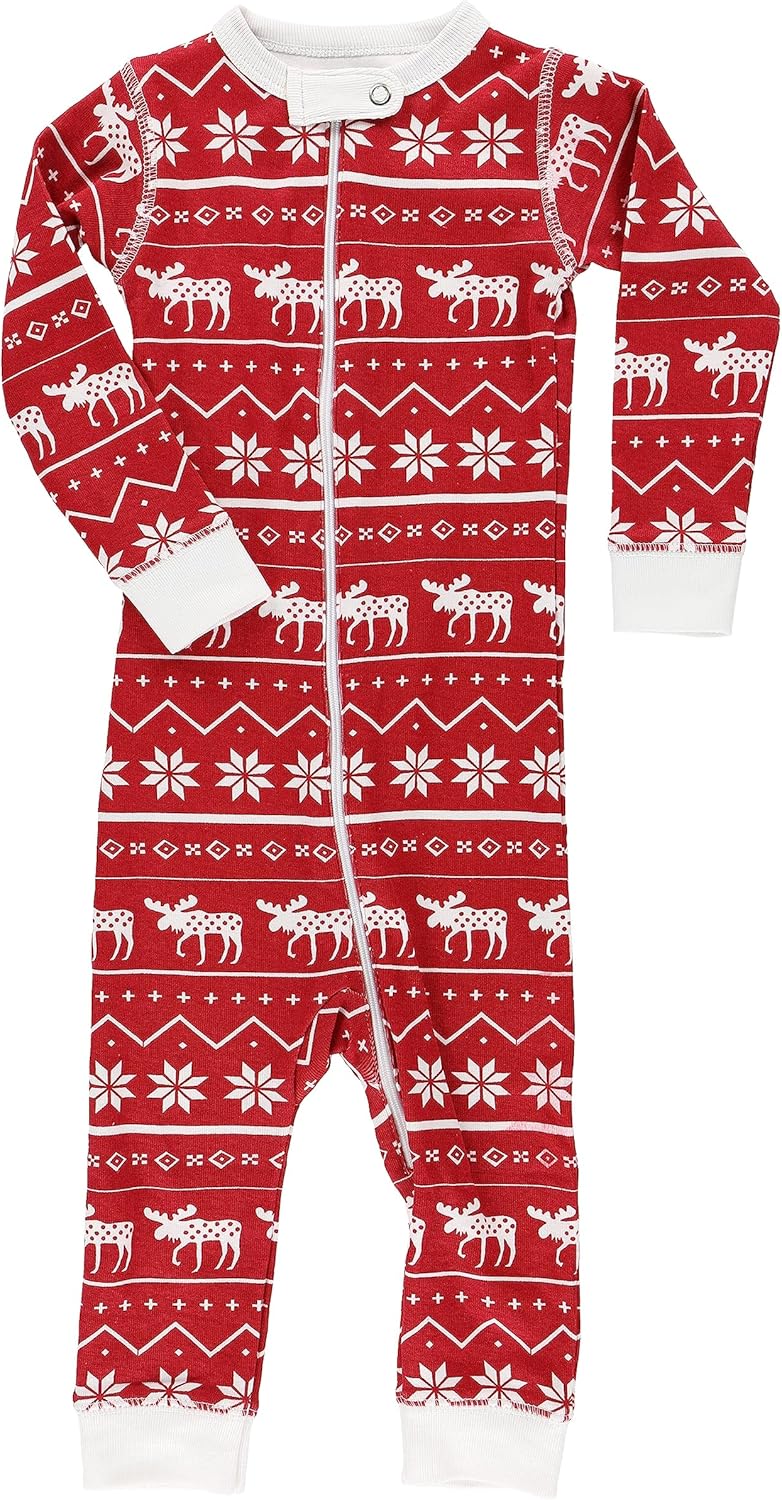 LazyOne One-Piece Pajamas, Baby Bodysuit, Long-Sleeve Baby Bodysuits, 6–18 Months(Moose Fair Isle Pajama)