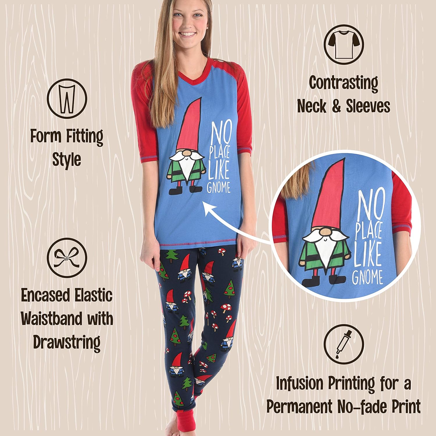 Lazyone Womens Soft Casual Pajama Leggings and Tall Tee Sets With Cute Fun Prints Cute Womens Pajama SetsNo Place Like Gnome Pajama Set
