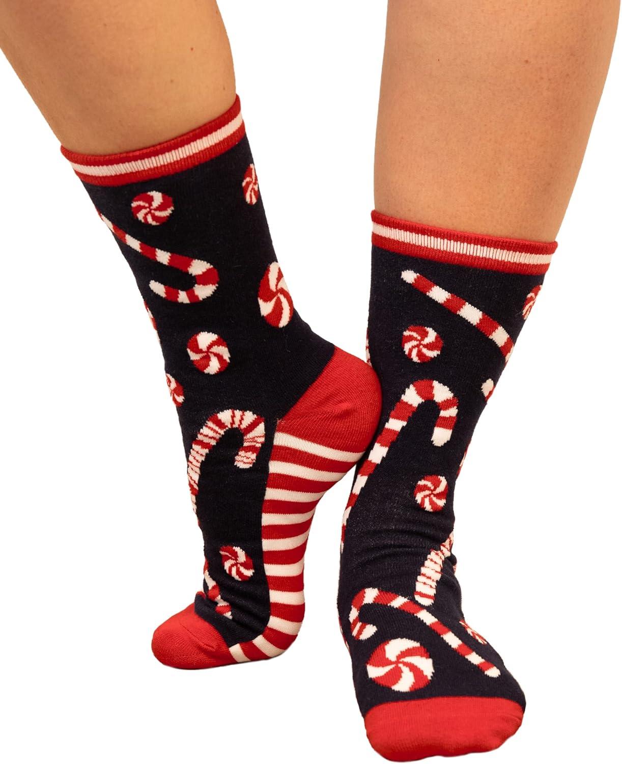 LazyOne's Men and Women's Novelty Crew Socks, Funny Gifts For Men and Women, Christmas Socks(Candy Cane)